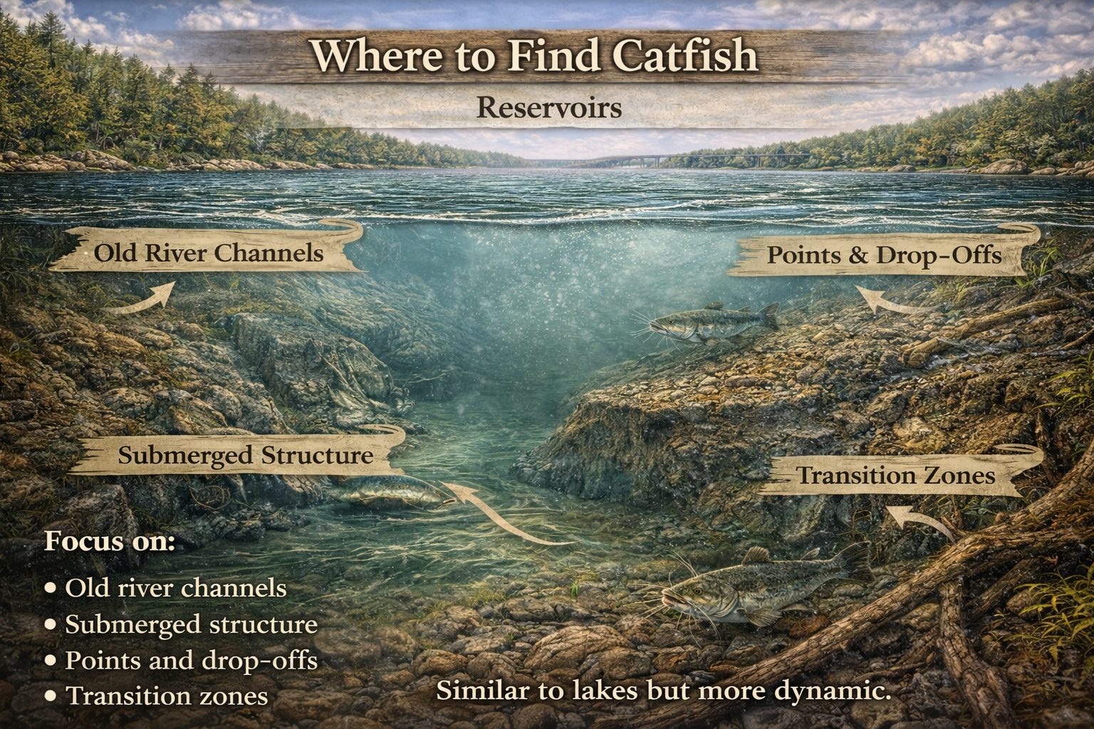 Catfish are structure-oriented, but more importantly, they are bottom-oriented and current-aware.